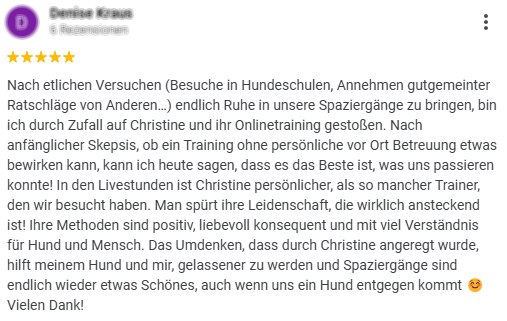 Ich, Christine, arbeite seit 2014 selbständig als Hundetrainerin mit angeschlossener „Hunde-WG“ (Tagesstätte und Pension), in der durchschnittlich bis zu 25 Vierbeiner unter meiner Verantwortung stehen. Eine fortlaufende Weiterbildung im Bereich Mehrhundehaltung ist für mich daher schon immer selbstverständlich gewesen.